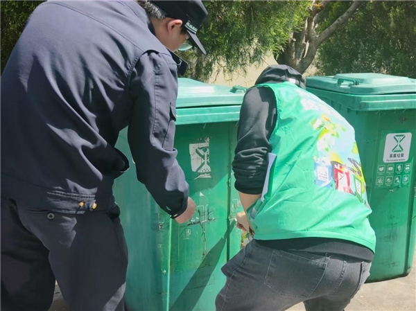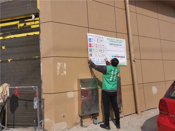 行动期间,海西镇突出“细节管理”,聚焦日常工作中易被忽视且易损耗的硬件设施问题,组织志愿者对各类垃圾桶外观及标识进行抽查与维护。在学区食堂等重点场所,志愿者与辖区工作人员协同作业,对磨损、模糊的易腐垃圾桶标识进行及时更换。现场工作中,志愿者不仅以实际行动完成标识更新,更借此机会与管理人员深入交流,明确各类垃圾桶摆放规范与清洁管理责任,引导其重视垃圾分类中的细微之处,树立“细节决定成效”的管理意识。