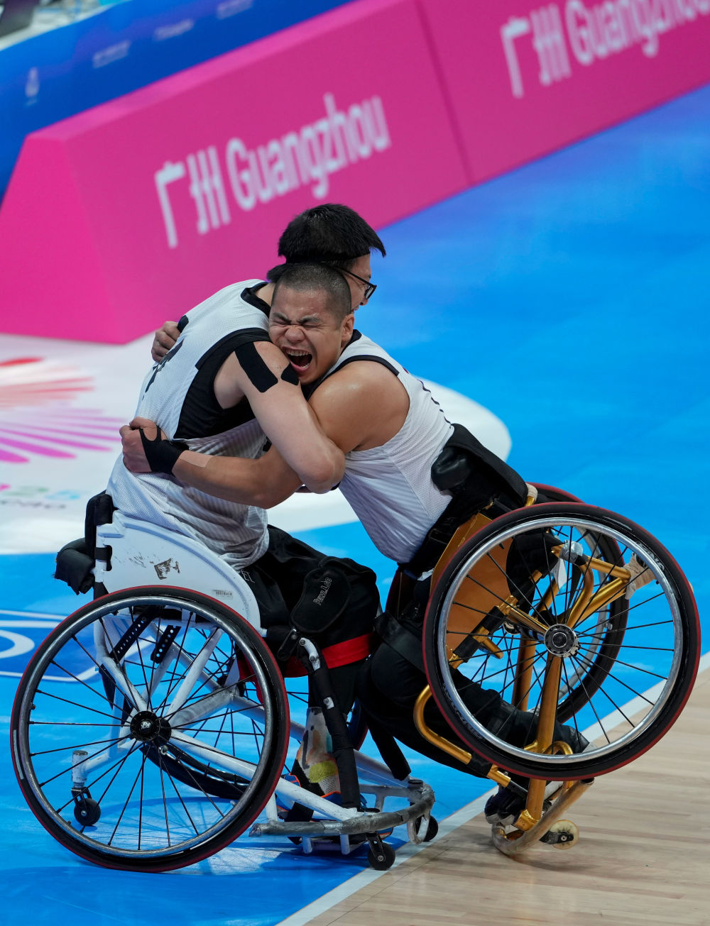 12月8日,在广州举行的全国第十二届残疾人运动会暨第九届特殊奥林匹克运动会轮椅篮球项目男子三人篮球决赛中,辽宁队13:9战胜北京队。新华社记者 吴鲁 摄