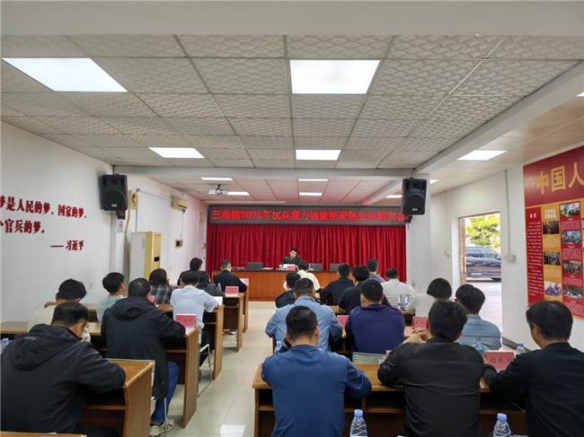 为扎实推进2026年度民兵潜力调查工作,精准掌握辖区内民兵潜力资源底数,12月9日上午,三角镇召开2026年民兵潜力调查部署暨业务培训会。镇武装部副部长林泽灏主持会议并讲话,民兵潜力调查工作相关单位、各村(社区)民兵连长以及及武装部全体工作人员参加会议。