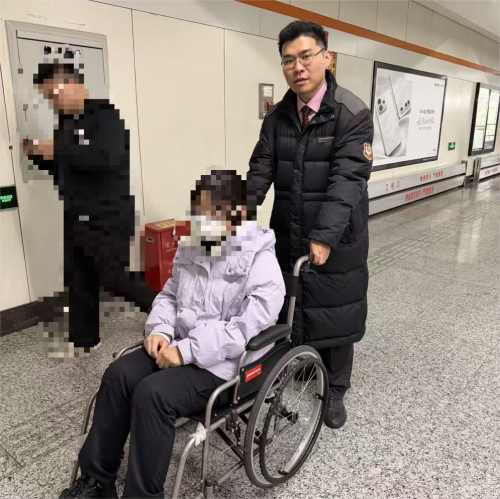 鉴于乘客行动存在不便,值班站长任怡主动询问并协助联系其家属,同时推来了便民轮椅,小心搀扶乘客坐上轮椅,一路保持平稳推行,至地面出入口。在此期间,值班站长任怡不时询问乘客的感受。最终,值班站长任怡与及时赶到的乘客家属碰面,将受伤乘客妥善转交其家人,并贴心地叮嘱了后续的注意事项。面对乘客及其家属的再三道谢,值班站长任怡表示:“保障乘客安全是我们的职责所在,请大家在出行时务必留意脚下情况,尤其是在楼梯、站台等位置,切勿分心查看手机。”