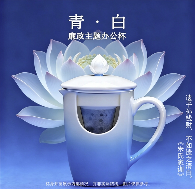依托宣传片中沧溪村的文化内核,团队进一步推动文化资源向产业价值转化,厦门数创寰球文化产业研究院联合北京达西传媒有限公司共同开发设计了 共同设计打造 “青白” 廉政主题办公杯文创产品,将勒功乡沧溪村的“清白” 廉政文化与景德镇陶瓷工艺相结合。该产品主设计师王亚婷(北京达西传媒有限公司)表示:“这套产品的设计灵感主要取自于勒功乡沧溪村的清廉文化的理解,以及景德镇青花瓷的蓝、白两色的应用,同时结合莲花出淤泥而不染的文化寓意,用文化去匹配这个杯子在日常生活中的应用场景,让来自乡村的优秀文化能够点缀人民的生活。”目前该产品已正式进入投产阶段,并同步开启预售和定制,实现了中国乡村传统家风文化从 “口头传承” 到 “实体转化” 的关键跨越,为乡村文化资源产业化开辟了新路径。