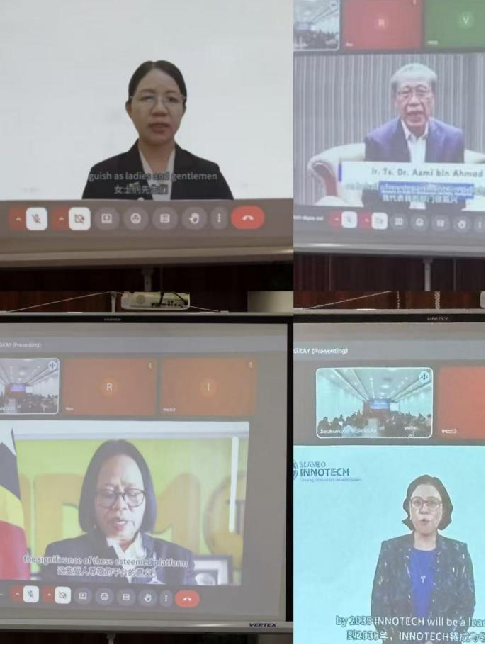 VEDI院长Bounseng KHAMMONTY博士在主旨报告中强调,交流周老挝(万象)分会场的设立标志着交流周作为区域性教育合作机制在开放、互惠、务实的合作方面进入了东盟区域属地化的新阶段,并以共建的“老中新能源汽车检测及培训中心”为例,分享了合作已取得实质性进展。老挝工贸能源学院副院长Viengsavang THIPPHAVONG介绍了与LCETPA开展的赴华留学项目,并表示将继续推动合作走深走实。德国国际合作署(GIZ)高级顾问Phimmasone THONGPHALYSACK也分享了国际教育合作经验及DCT机构相关成果。此外,马来西亚人力资源部技能司副司长Dr. Azmi bin Ahmad、东帝汶国家人力资源发展院主任Isabel Fernandes De Lima、东南亚教育部长组织创新中心(SEAMEO INNOTECH)主任Dr. Majah Ravago、缅甸农村合作社及发展部中小规模产业司副主任Zin Mar Myo等东盟各方代表通过线上方式表示对交流周老挝分论坛的祝贺、各国产教融合发展介绍及未来合作计划分享。