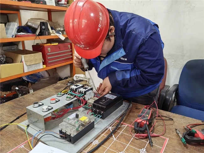 实操过程中,参赛人员纪律严明、操作规范、尊重裁判,表现出积极向上和奋勇争先的精神风貌。各位评委老师们秉着公平、公正、公开的评分态度,认真的对比赛选手做出了详细的评分,评分内容有:正反转电路检修、调试、故障元件更换及线路的检修等方面。最后经过激烈的角逐,倪长坤获得比武第一名。(通讯员 宋战伟)