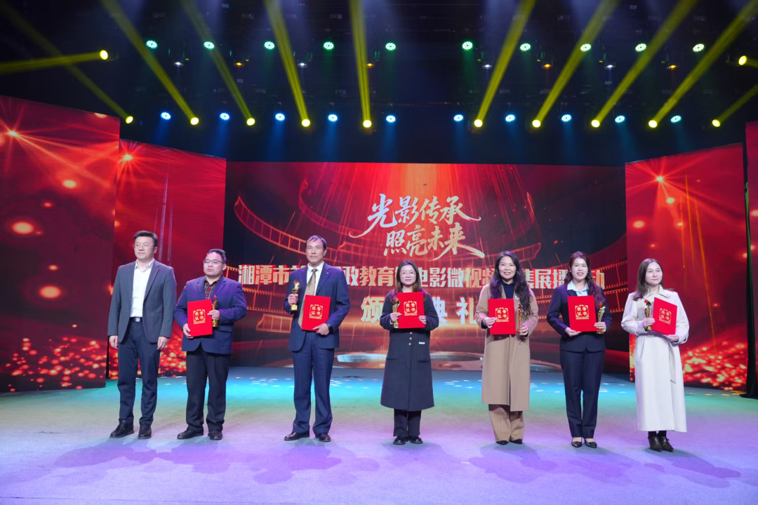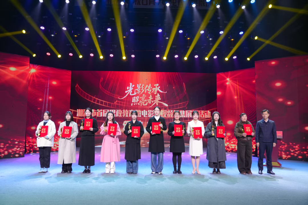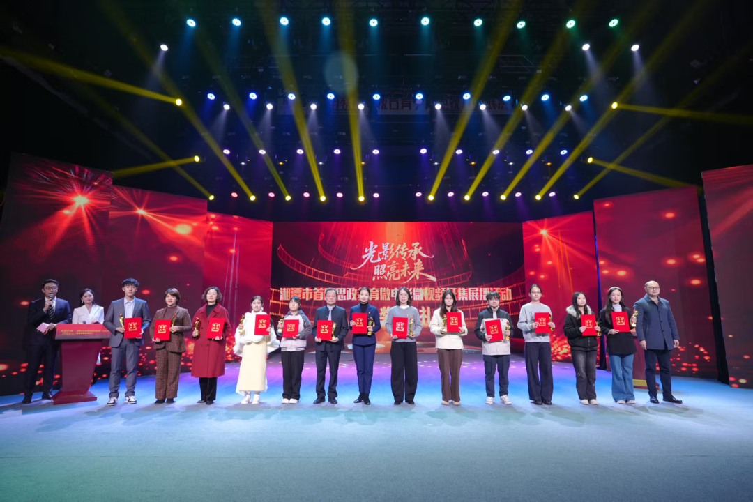 “光影传承 照亮未来”湘潭市首届思政教育微电影(微视频)征集展播活动颁奖典礼在湘潭市岳塘区滴水湖学校孩子们表演的合唱节目《中国》中落下帷幕,历时70分钟,每一份荣誉的揭晓,都是对师生们匠心智慧与辛勤付出的崇高礼赞。