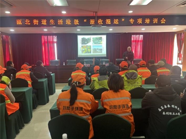 为深入贯彻《浙江省城市市容和环境卫生管理条例》、《浙江省生活垃圾管理条例》等相关法律法规要求,进一步规范生活垃圾分类收运全流程管理,破解收运环节的混收混运难题,瓯北街道组织开展生活垃圾混收混运专项培训会。辖区内负责相关工作的四家保洁公司管理层及部分环卫工人和执法中队人员齐聚一堂,通过政策解读、案例剖析等多形式,筑牢垃圾分类收运“末端防线”。