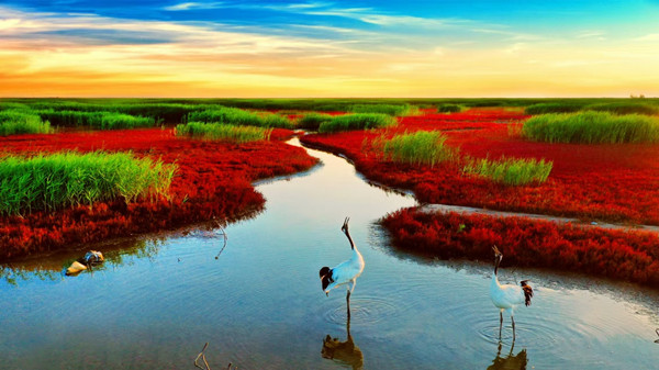 在红海滩廊道,作家们与扎根湿地30年的养鹤人促膝长谈,见证2.5万亩盐地碱蓬修复的生态奇观,邂逅丹顶鹤漫步冰雪苇海的灵动景致。这片拥有世界最大滨海芦苇湿地的土地,60.84%的国土面积为湿地,通过“退养还湿”恢复湿地8.59万亩,已成珍稀鸟类的“栖息天堂”。