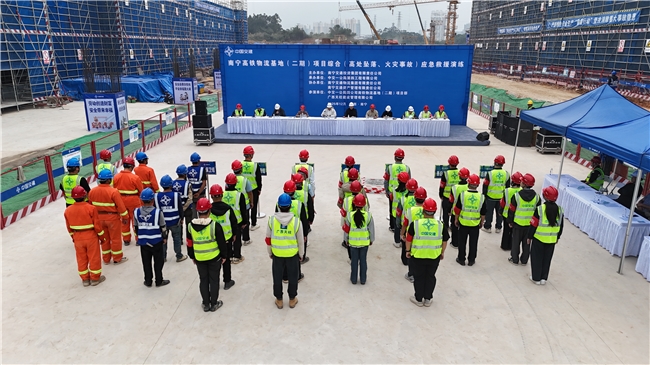 为检验安全应急预案实用性、提升突发事件处置能力,最大限度减少人员伤亡和财产损失。近日,中交一公局四公司南宁高铁物流基地(二期)项目在施工现场开展综合应急救援演练,重点模拟高处坠落、火灾事故两大应急场景。南宁市建管中心、青秀区应急管理局、南宁交通投资集团、南宁交通物流集团、南宁交通资产管理、广西天柱建设管理有限公司等单位相关领导莅临观摩指导。