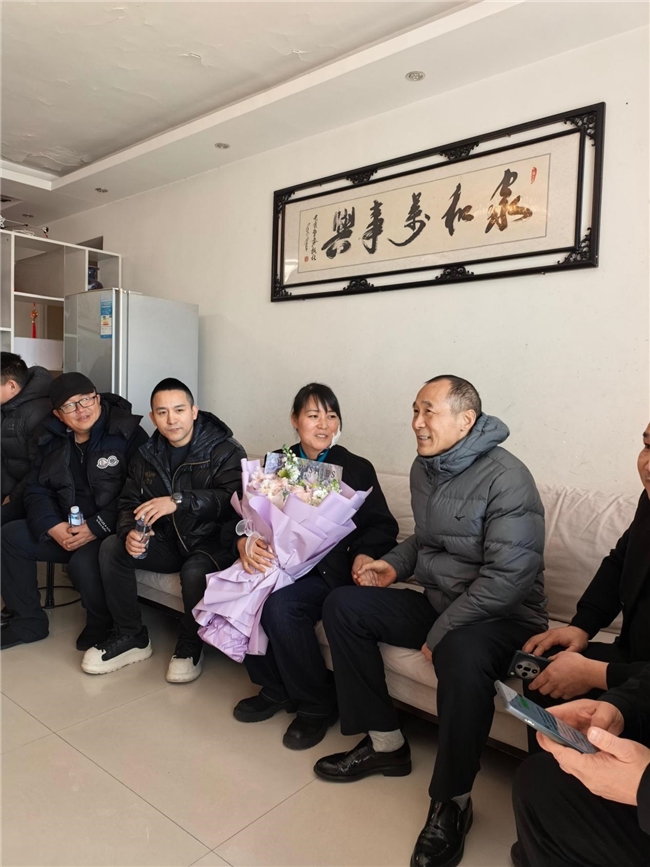 1月6日,河南司法警官职业学院警体部主任刘鹏启带领十余名在校学员,专程从郑州赶赴漯河看望王妙丽。看着昔日学生脸上缠着纱布、说话时因疼痛而蹙眉,这位硬汉教官眼眶湿润。