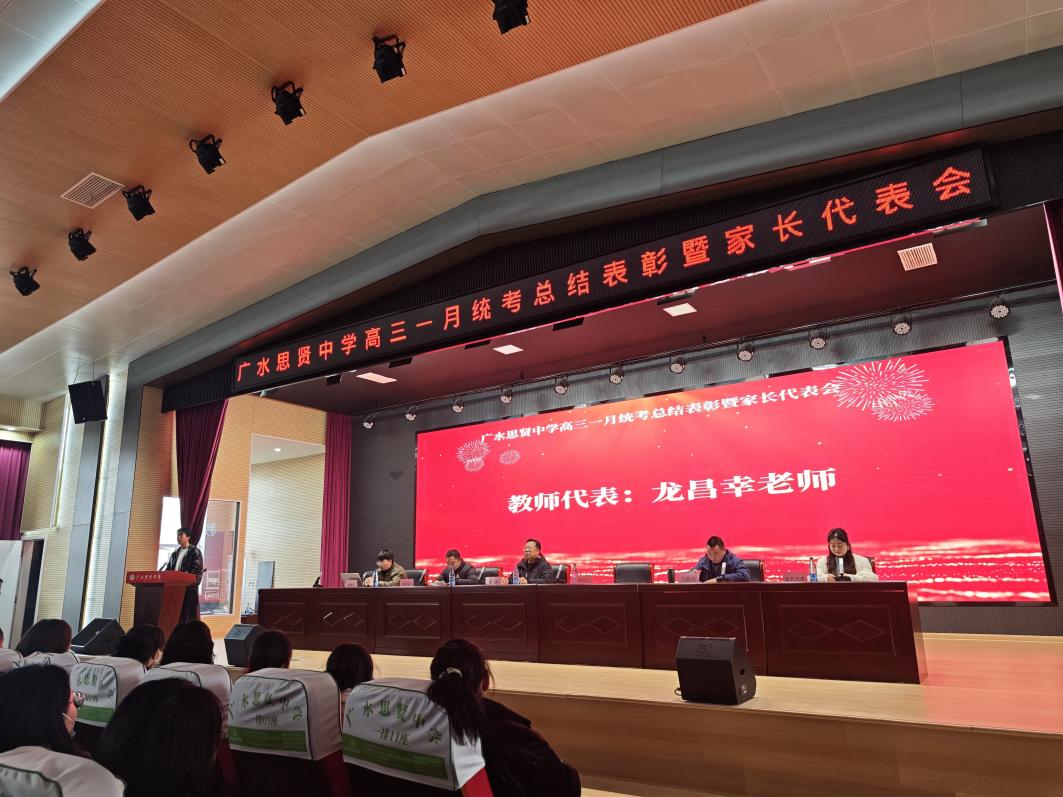 表彰大会现场,学校对4名重本学生及71名优秀学生予以隆重表彰,氛围庄重而热烈。副校长马艳东在致辞中总结“此次统考的优异成绩,是学校长期深耕精准育人体系的必然结果,更是全体师生凝心聚力、日夜兼程奋斗的生动回报。”年级主任黄伟历结合统考数据展开深度复盘,同时为家长送上科学督导指南。副校长吴军云系统梳理了高三复习备考的阶段性成果与不足,明确了下一阶段“靶向攻坚、精准提分”的核心方向。
