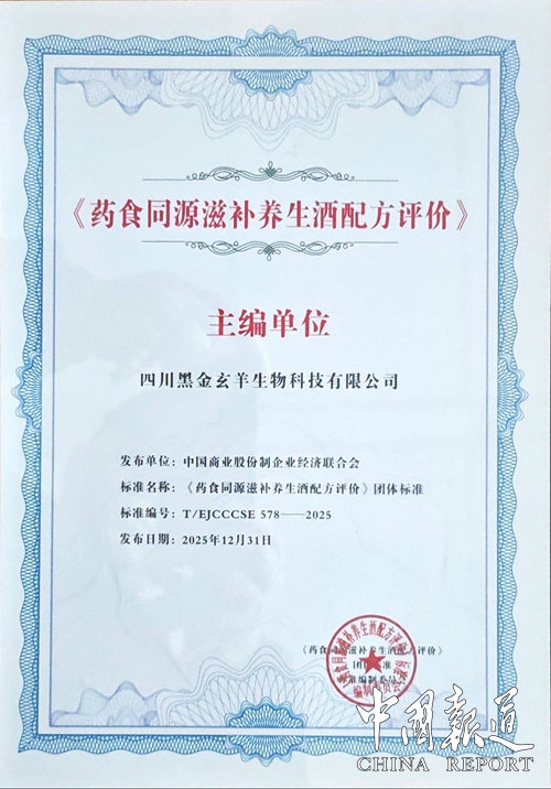 经四川黑金玄羊生物科技有限公司(玄羊液)三年来艰苦努力,《药食同源滋补养生酒配方评价标准》的编制工作在近日得以完成,中国标准化管理委员会于2025年12月30日正式在官网发布,标准编号T/EJCCCSE578--2025。