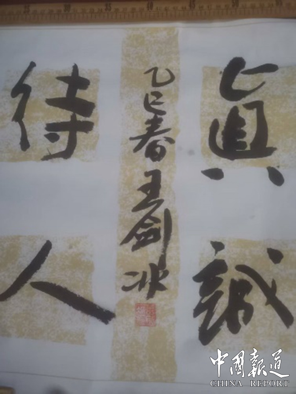 一支笔行云流水,笔锋在纸上缓缓游走,书写出“真诚待人”四字。字里行间,刚劲与柔润相生,方正中藏着圆融,力度里透着温度。每一笔都似乎有生命,仿佛在诉说一种信念:忠诚、担当与德行,皆源于心底的澄明与坦荡。真诚,不仅是行为的外在形式,更是灵魂的自洽,是人格深处一盏明亮的灯,照亮自己,也照亮他人。