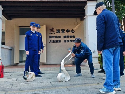 理论讲解结束后,现场实操演练同步开展。大队监督员亲自示范,手把手指导参训人员轮流操作水枪水带、灭火器,纠正大家操作过程中的不规范动作,让每一位参训人员都能熟练掌握消防产品的使用方法,真正做到“懂产品、会操作、能应急”。针对景区配备的消防摩托车,监督员也进行了专项科普培训,现场演示了消防摩托车搭载的便携消防设备的使用方法。