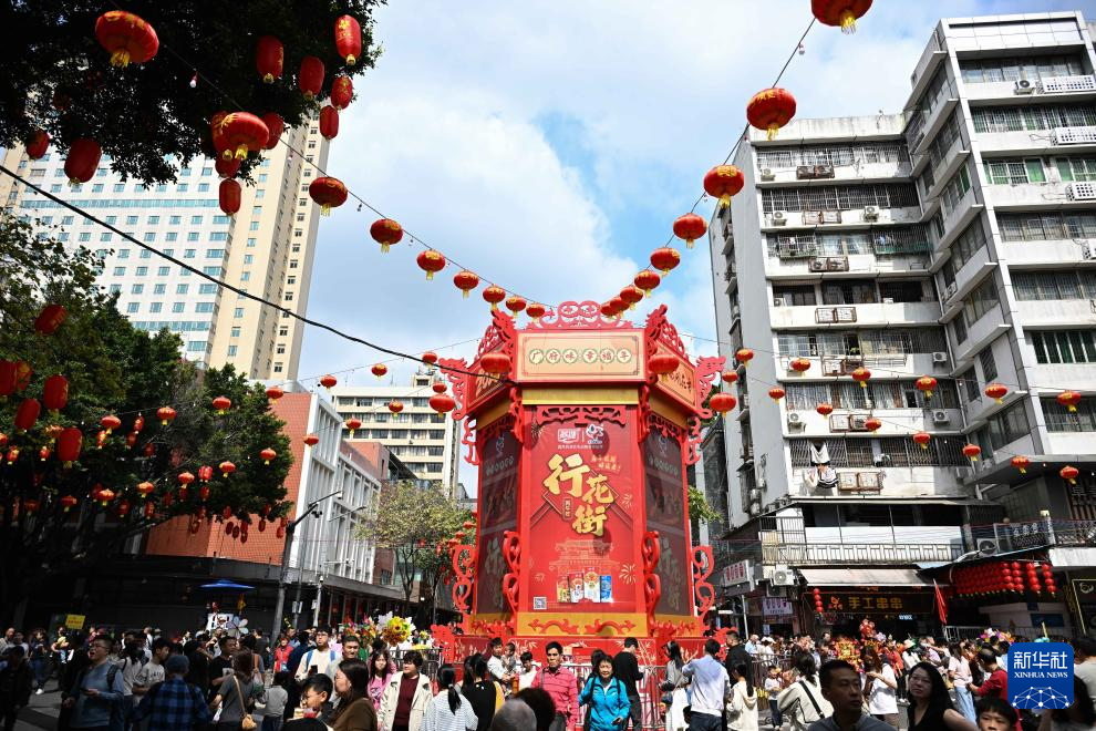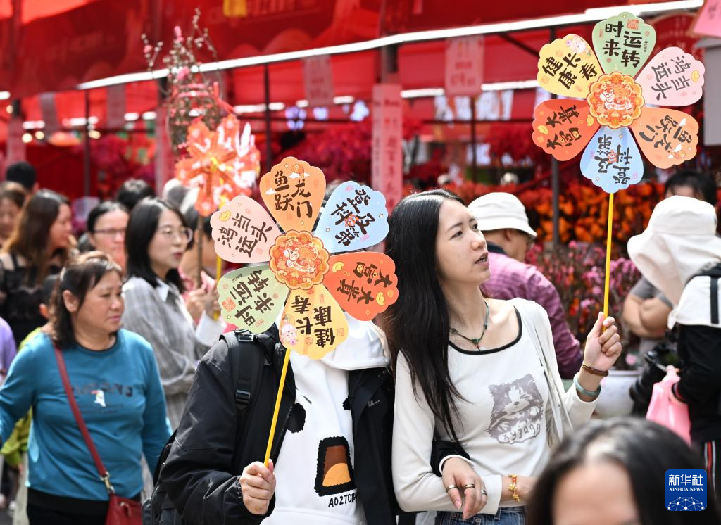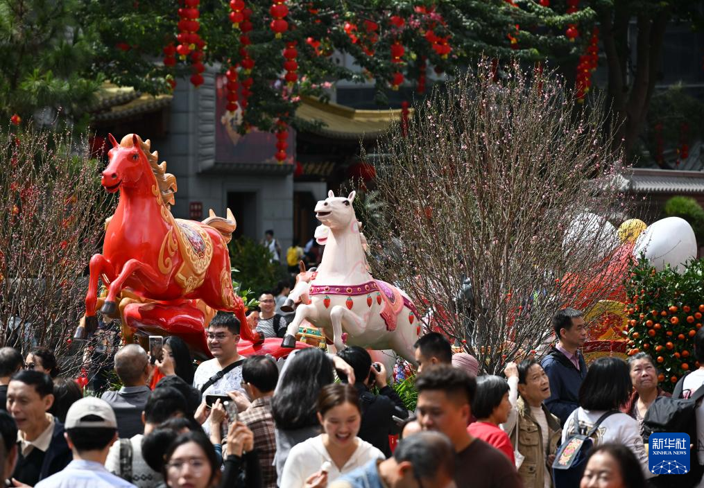 2月15日,在广州越秀西湖花市,游客逛街游玩。