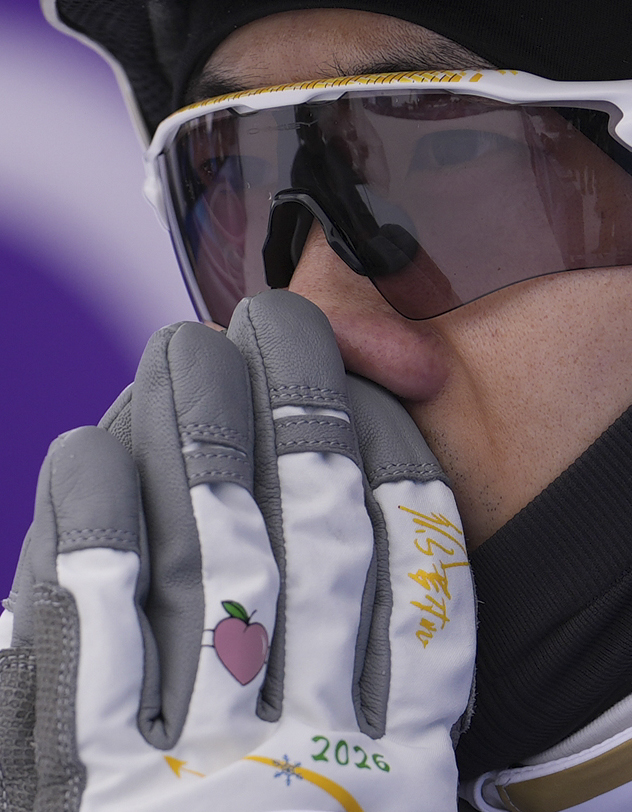 2月16日,中国选手谷爱凌在比赛后庆祝。新华社记者 胡超 摄