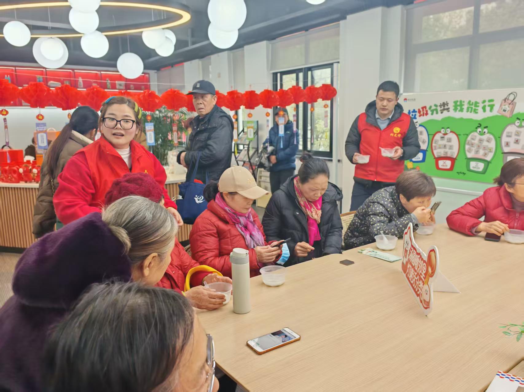 灯火映元宵,新风润社区。为进一步弘扬中华优秀传统文化,丰富居民精神文化生活,2月25日,桐乡市梧桐街道东兴社区组织开展 “猜灯谜学分类,闹元宵品汤圆” 主题宣传活动。