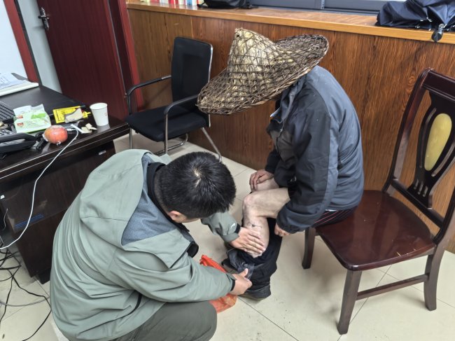 等待移交期间,工作人员通过手语沟通得知,该走失人员从璜尖乡翻山步行至中洲镇途中不慎摔倒,身体多处疼痛不适。工作干部立即取出急救药箱,为其进行临时检查与处置,缓解身体不适。同时,与安徽省璜尖乡相关部门对接,详细通报人员情况与身体状况,落实跨区域救助协作机制,顺利完成信息核对与移交衔接。