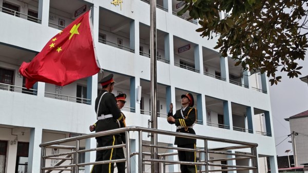 伴随着雄壮的国歌声,五星红旗冉冉升起,全体师生肃立致敬,开学典礼正式拉开帷幕。