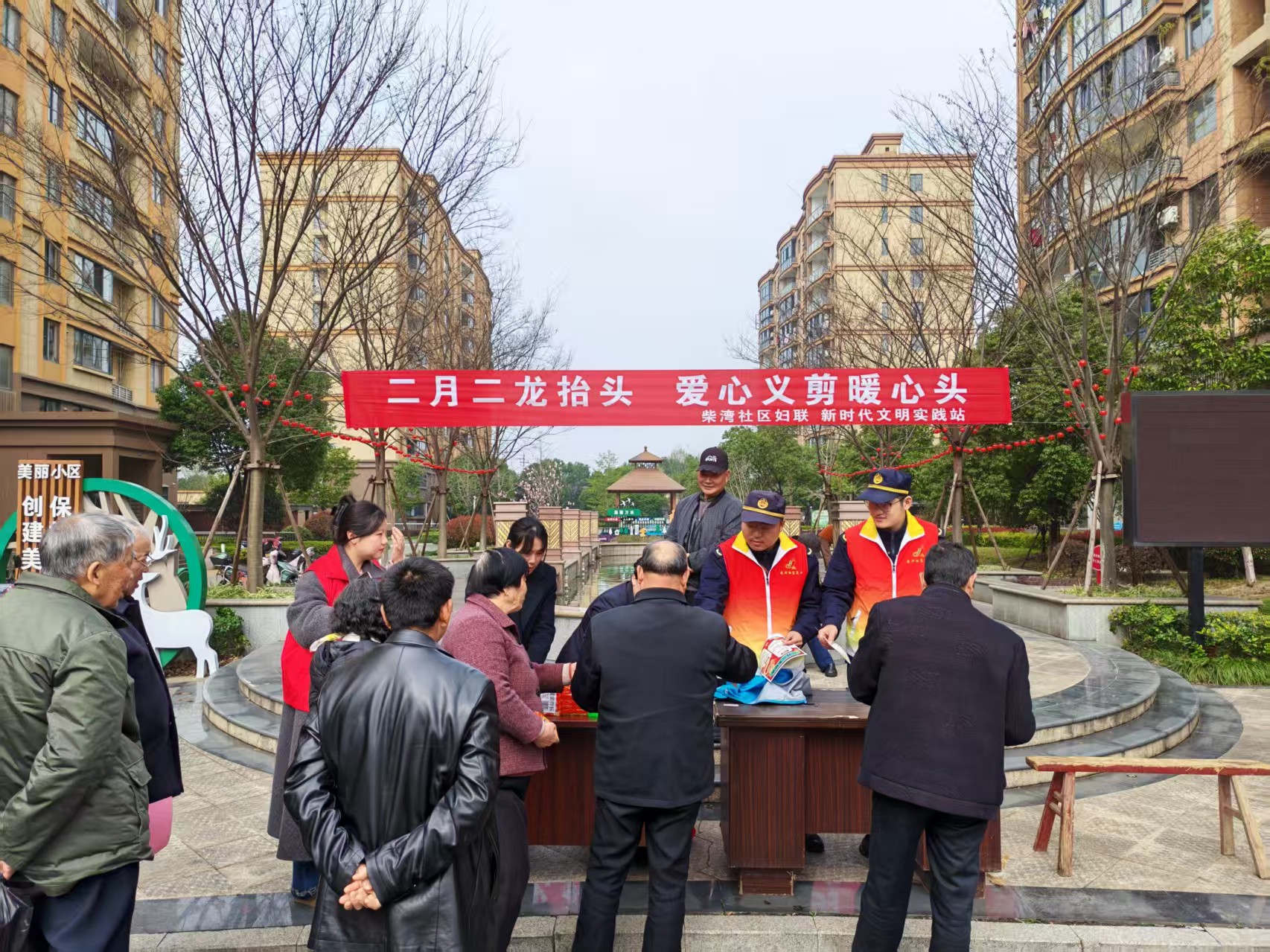 二月二,龙抬头,春风送暖,万象更新。为弘扬传统文化,传递社区温情,柴湾社区联合湖州银行泗安支行、长兴县综合行政执法局泗安中队以及社区志愿者团,共同举办了一场别开生面的“爱心义剪”主题活动。活动现场热闹非凡,各单位将便民服务与文化传承、安全宣传有机结合,为社区居民送上了一份春日的暖心礼物。