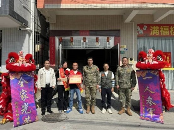2026年以来,有8位现役军人立功受奖,其中,“四有”优秀士兵7人,分别是横东村吴嘉杰、横西村梁钧耀、六沙村黄新宇、三沙村吴智豪、贴边村梁梓健、新茂村黄智恒和黄展驹,“四有”优秀义务兵1人,宝裕村冯键毅。镇党委副书记、武装部部长黄亮率领镇武装部、退役军人服务中心及相关村(社区)组成的“报喜团”,将满载荣誉的“四有”优秀士兵、义务兵喜报,逐一送至以上八位横栏好男儿的家中。
