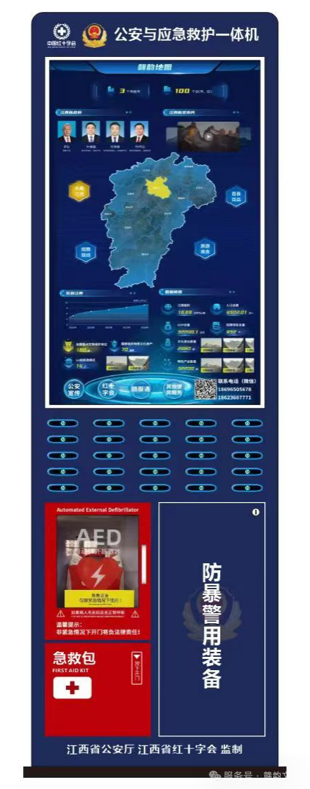 在公安消防与救护一体机、房车(太空舱)外大屏循环播放 “赣韵地图” 宣传片(包括平安江西反诈、禁毒、网络安全、消防防火、紧急救护等公益宣传);设立沉浸式体验区,支持触屏互动,设置 “扫码购” 功能,用户扫码后跳转至商品页线下体验线上下单;设立暖警亭、爱心驿站区域,为户外执勤的交巡警、长途司机、环卫工人等外勤人员,提供免费热水、充电插座、急救包、休息座椅、一键式报警装置、AED 急救除颤仪等基础服务;设置 “爱心物资领取点”(如冬季暖饮、夏季清凉包),解决户外工作者 “饮水难、休息难” 问题,甚至可以把公益慈善数字流动助浴 + Ai 陪诊放进去,彰显城市温度,助力和谐社会,打造全国首个 “数字化 + 公益” 省级推广样板。通过这一举措,构建 “线上电子地图 + 线下太空舱”的立体宣传网络,扩大江西文化、旅游、招商的传播范围,提升政府的公益形象,实现文化传播、经济促进与社会责任多重目标。