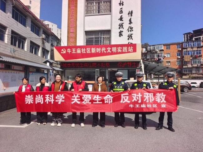 网格聚力筑防线 科学反邪护家园:为进一步提升社区居民防范邪教的意识与能力,筑牢基层平安治理防线,营造崇尚科学、文明和谐的社区氛围,近日,宜春市袁州区化成街道牛王庙社区联合辖区交警部门,开展“敲门入户”反邪教主题宣传活动,以接地气、有温度的宣传方式,将反邪知识送到群众家门口、心坎上,织密织牢社区反邪防护网。