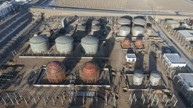 近日,随着最后一台甲醇C罐主体安装就位,由中国化学工程所属中国五环工程有限公司EPC总承包建设的甘肃巨化高性能硅氟新材料一体化项目液体贮运设施非标设备主体安装工作完成,为工艺安装全面铺开奠定坚实基础。