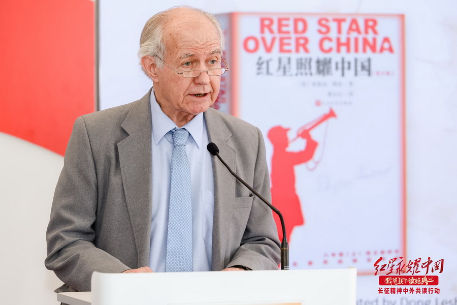启动仪式上,埃德加•斯诺的内侄埃里克•福斯特,用一张张温情的老照片、一段段斯诺深入红色苏区报道工农红军的动魄经历,娓娓道出书籍创作中的故事,再现了红军战士在艰苦卓绝的困境中乐观向上、奋力拼搏的不屈精神。