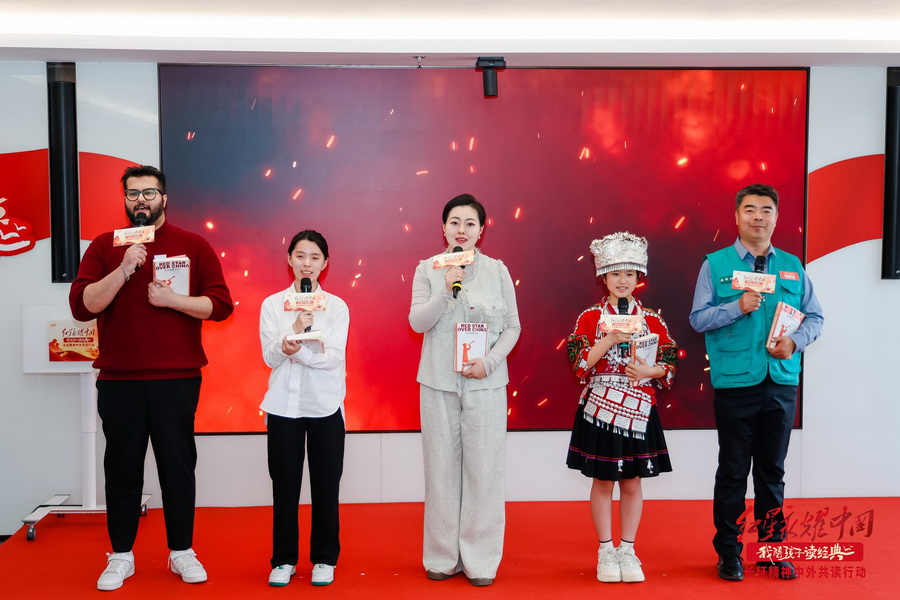 经典共读环节,社会各界人士与学生代表同台共读《红星照耀中国》《长征》等精彩选段,滚烫的红色信仰,在多语种交织的诵读声中悄然流淌。