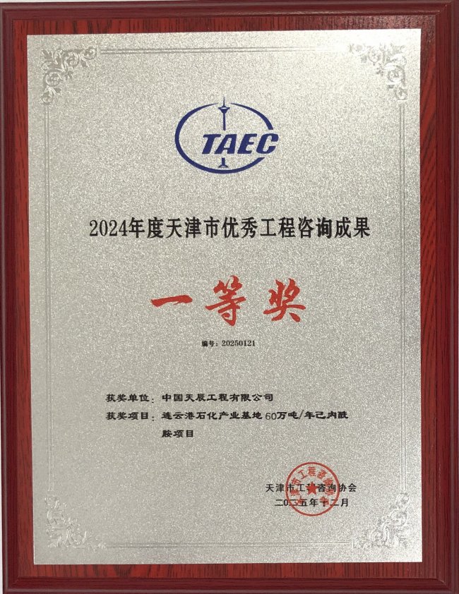 连云港石化产业基地60万吨/年己内酰胺项目荣获“2024年度天津市优秀工程咨询成果”一等奖;