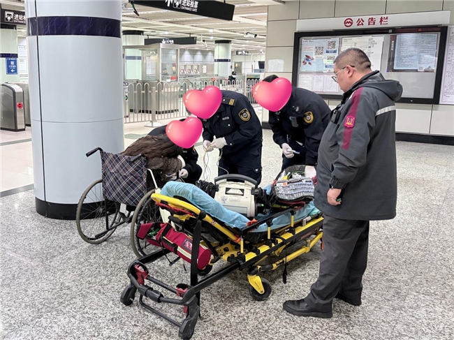 刘站长接到报告后立即赶至现场,只见该乘客脸色苍白、直冒冷汗,刘站长随即安排工作人员将糖水、轮椅送至现场,并在众人协助下,小心地将乘客搀扶到轮椅上休息。在征得乘客的同意后,为其拨打120急救电话。在等待急救人员到来期间,刘站长一直守护在乘客身旁,耐心安抚其情绪,持续关注其状态。