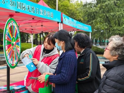 活动现场设置了多个功能区,包括垃圾分类普法宣传区、互动游戏体验区、变废为宝作品展示区、无废城市创建展板区以及无废知识宣传手册发放区等。其中,最受市民欢迎的当属垃圾分类“大转盘”有奖互动环节。只见一只巨大的转盘上写满了各类垃圾名称,参与者轻轻转动转盘,待指针停下后,需准确回答指针所指物品属于哪一类垃圾——“过期药品属于什么垃圾?”“卫生巾是什么垃圾?”一个个贴近生活的问题既考验了市民的垃圾分类知识,又激发了大家的参与热情。答对者即可获得垃圾袋、纸巾、鼠标垫等实用小礼品,现场笑声不断,气氛热烈。不少市民表示,这种“答题+转盘”的形式生动有趣,不枯燥、不教条,在轻松愉快的氛围中检验了自己的知识储备,还赢取了小礼品,不知不觉就把垃圾分类的要点记在了心里。