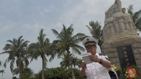 随后,总队督察长柯水喜同志以沉痛而崇敬的语调,现场宣读祭奠革命烈士祭文。祭文追忆了七十多年前解放军将士们劈波斩浪、强渡琼州海峡的英雄史诗,颂扬了革命先烈为海南解放与建设发展立下的不朽功勋,表达了后来者无尽的哀思与崇高的敬意。