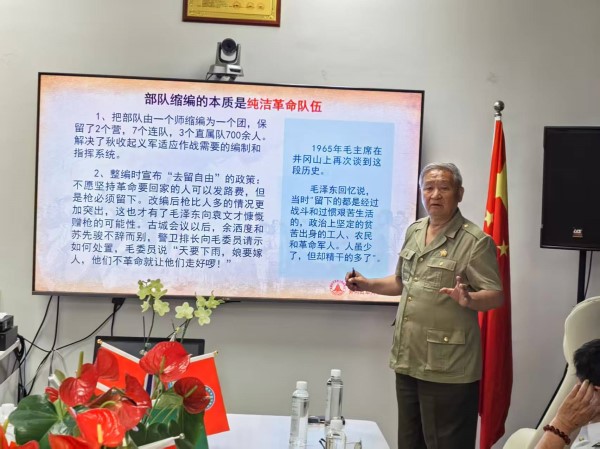 宣讲会上,何继明抚今追昔、情真意切,循着百年党史的光辉足迹,结合自身深厚的红色家史,娓娓讲述三湾改编的峥嵘岁月。他深情回望,1927年金秋,革命风云激荡,前路风雨飘摇,毛泽东同志在江西永新三湾,力挽狂澜领导那场彪炳史册的伟大军队整编。于革命队伍军心涣散、前路迷茫的危急时刻,老一辈革命家以磐石般的坚定信仰,确立“党指挥枪”的根本原则,筑牢“支部建在连上”的组织根基,践行“官兵平等、凝心聚力”的革命初心,铸就了信念如磐、听党领航、求真务实、敢闯敢创、团结奋进的不朽精神。他言语铿锵、饱含赤诚,一段段烽火往事、一个个初心故事,穿越历史云烟直抵人心,让在场众人仿佛重回那段热血燃烧的岁月,深切感悟三湾改编精神跨越时空、历久弥新的磅礴力量。