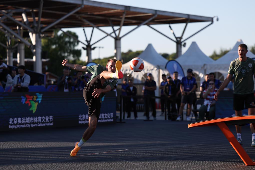 2024年9月22日,在北京奥林匹克森林公园举行的2024年台克球世界系列赛北京站男双决赛现场。新华社记者 王楷焱 摄