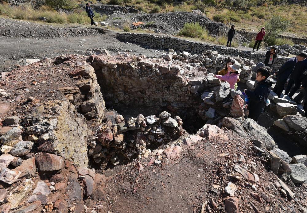 考古学家在宁夏贺兰苏峪口瓷窑址2024年度发掘区考察一处发掘出土的窑炉遗迹(2025年10月13日摄,新华社记者李贺摄)。